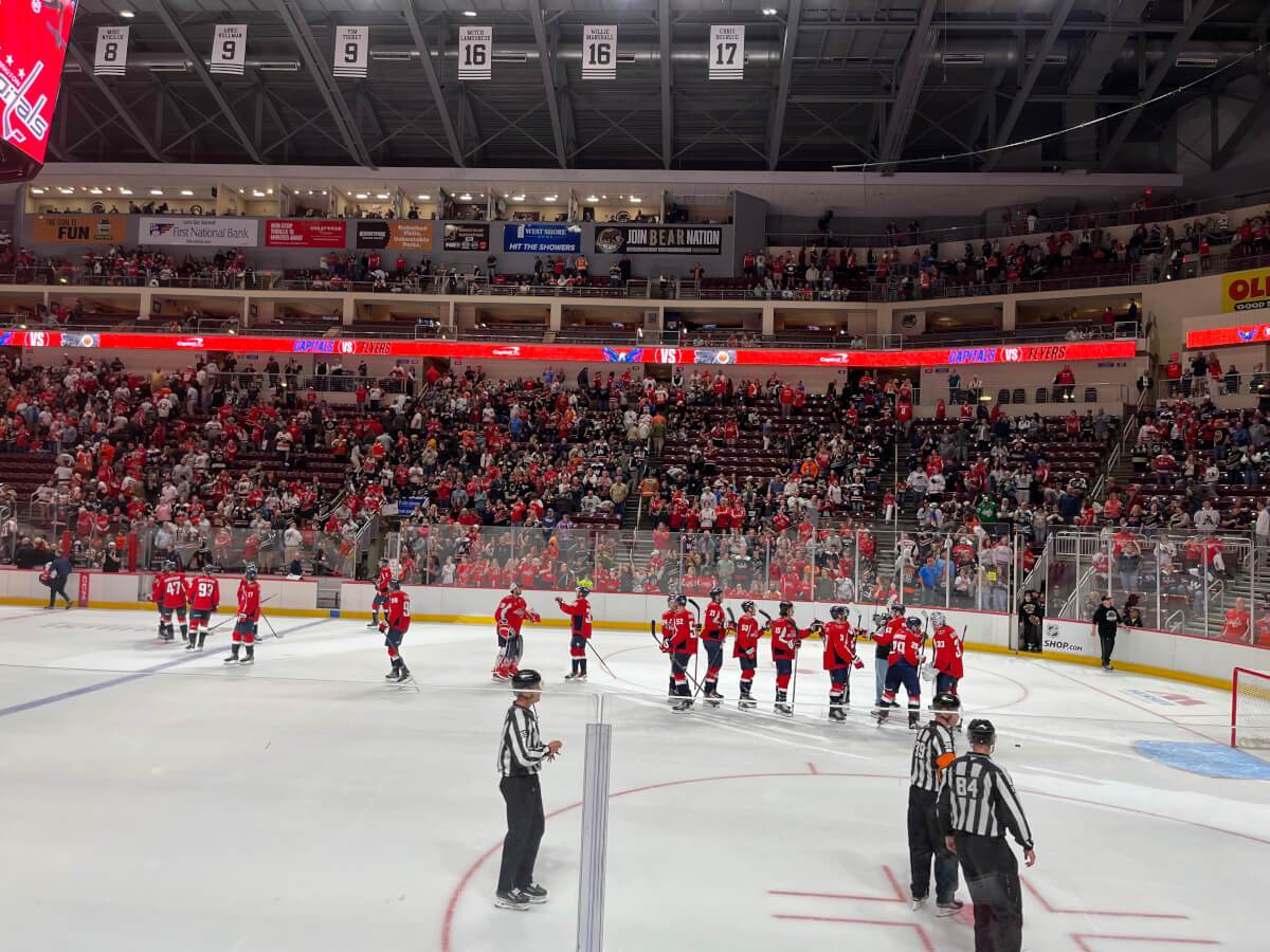 On September 25, 2025, I went to the Giant Center in Hershey with my mom, dad, and brother CJ to watch the Washington Capitals play the Philadelphia Flyers in a preseason game. It felt a little weird walking back into the arena since we hadn’t been there since the Bears lost in the playoffs. We didn’t stop anywhere—we just headed straight in because I was too excited for hockey to start again.